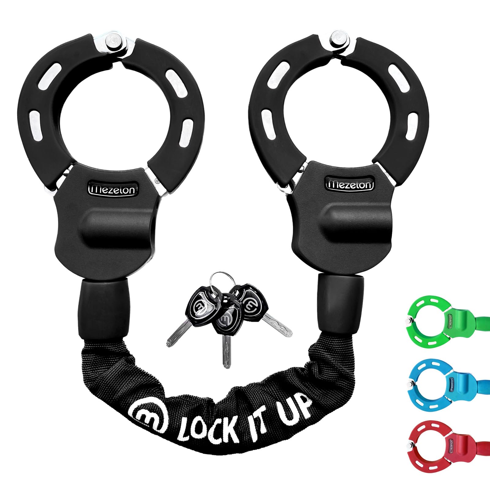 Honszex Candado Antirrobo para Scooters/Patinete Eléctricas/Bicicletas/ Carritos de Bebé, Candado de Cadena Resistente con Llave y Bolsa Impermeable